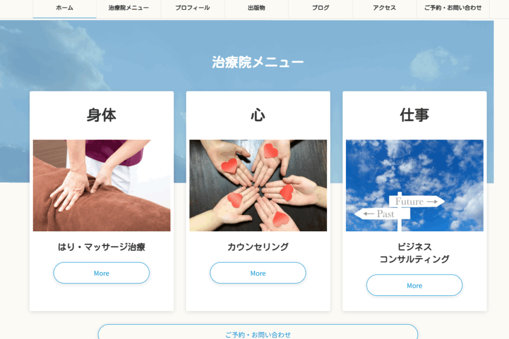 ご依頼主様のお好きな海のイメージをベースにした、爽やかなカラーリングのサイトです。